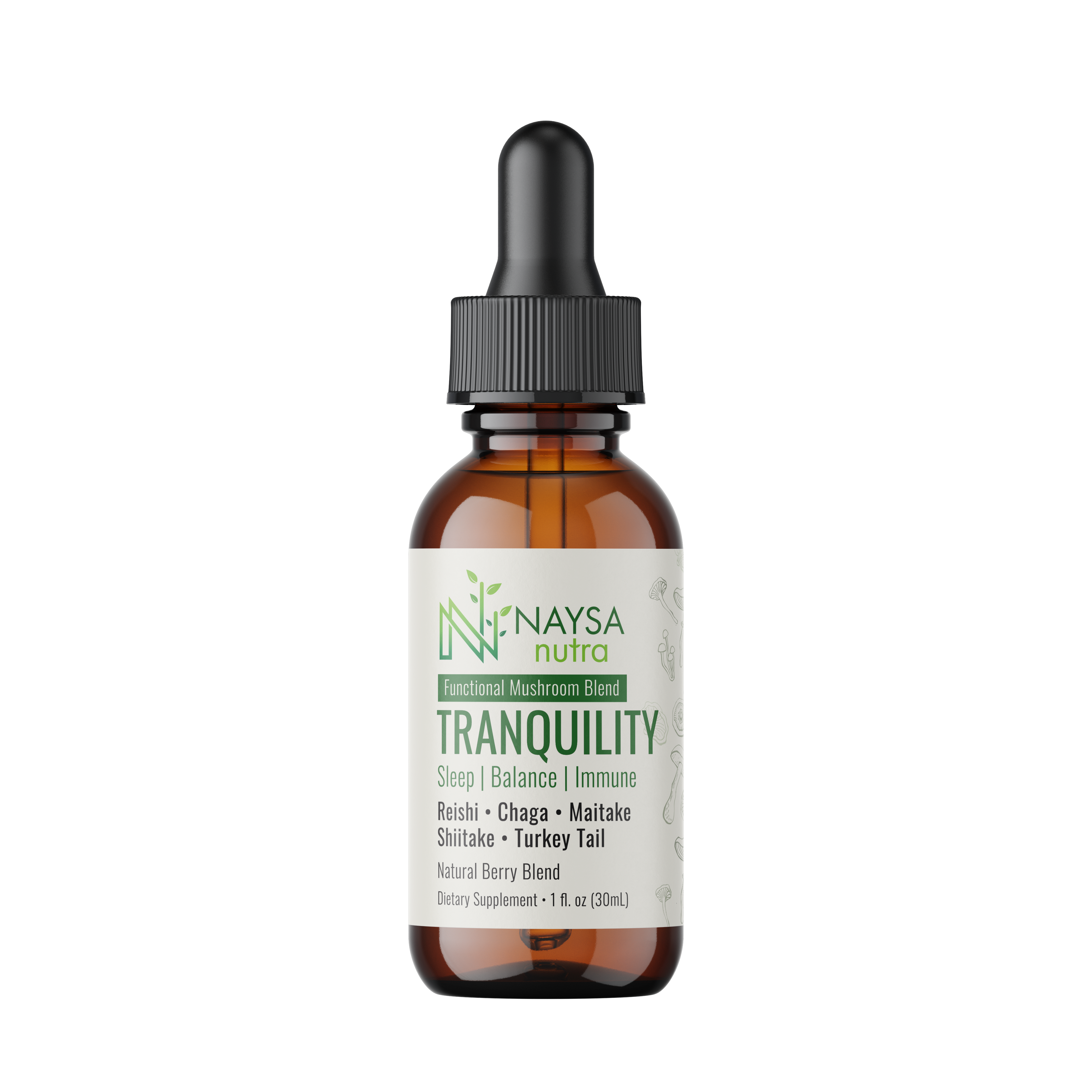 Why Choose Our Tranquility Mushroom Extract Drops? Our Tranquility Mushroom Extract Drops offer a unique and natural way to support relaxation and overall well-being. The blend of Reishi, Chaga, Maitake, Shiitake, and Turkey Tail mushrooms provides numerous health benefits, including enhanced mood, stress relief, and immune support. The natural berry flavor makes it easy and enjoyable to incorporate into your daily routine.